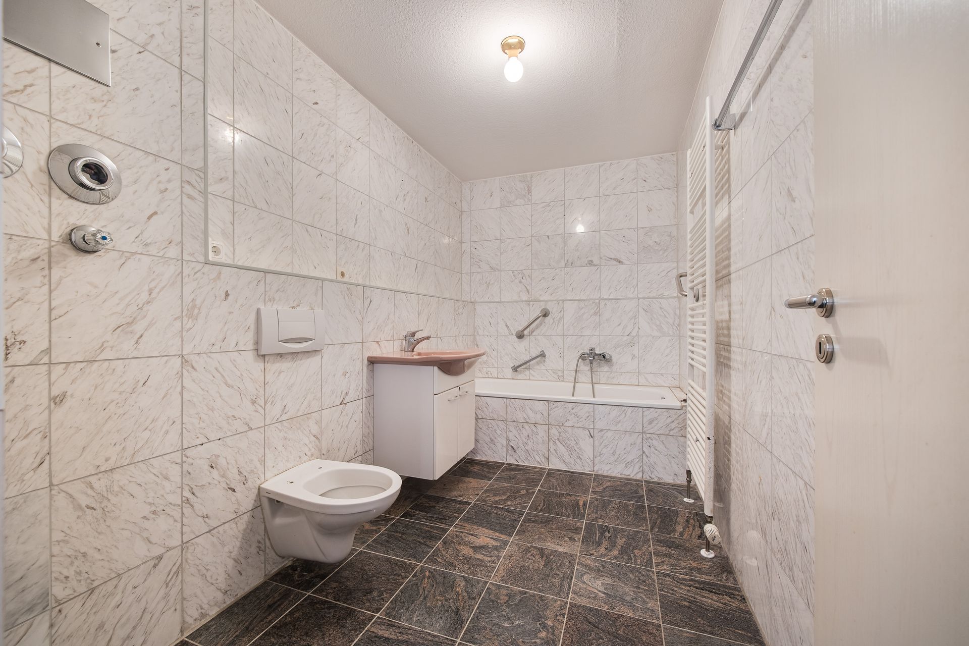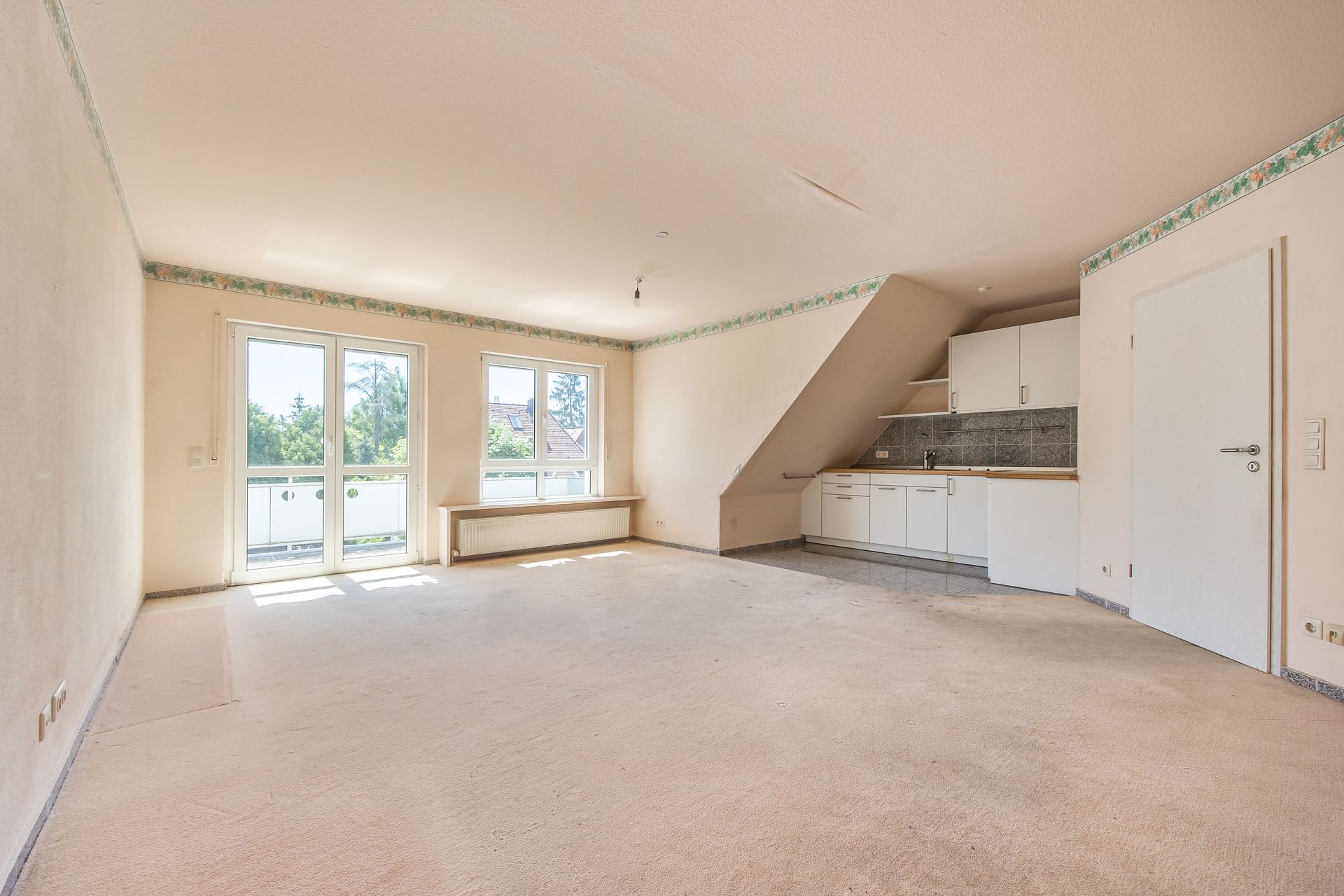 Helle, renovierungsbedürftige Wohnung mit großem Balkon und Tiefgaragenstellplatz